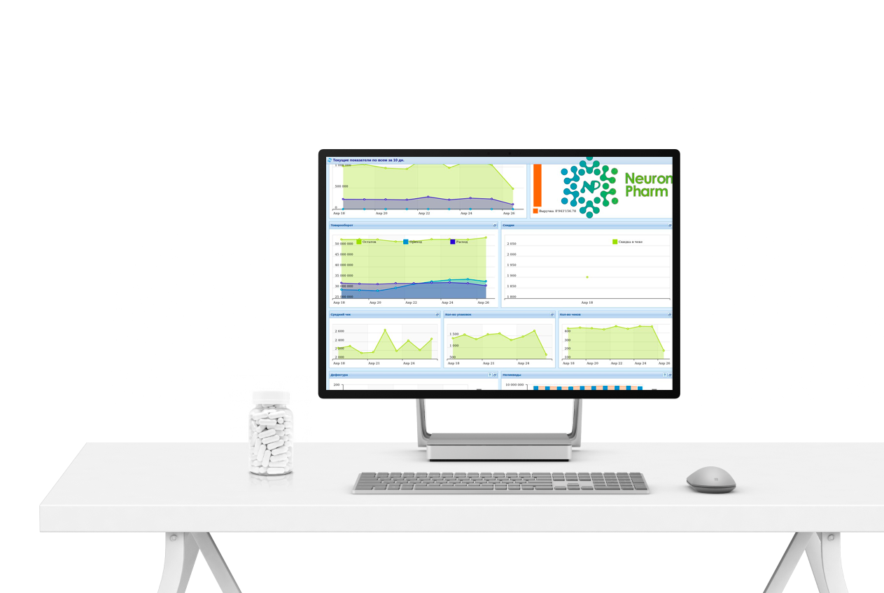 "Нейрон Фарм" — специально созданная программа для автоматизации аптек. Она "знает" все тонкости фармацевтического рынка и помогает вам сфокусироваться на главном — на заботе о клиентах и развитии бизнеса.